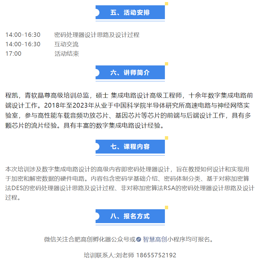 企業(yè)培訓(xùn)丨歡迎各位報(bào)名參加超大規(guī)模數(shù)字集成電路設(shè)計(jì)實(shí)例《密碼處理器設(shè)計(jì)》集成電路專項(xiàng)培訓(xùn)活動(dòng)