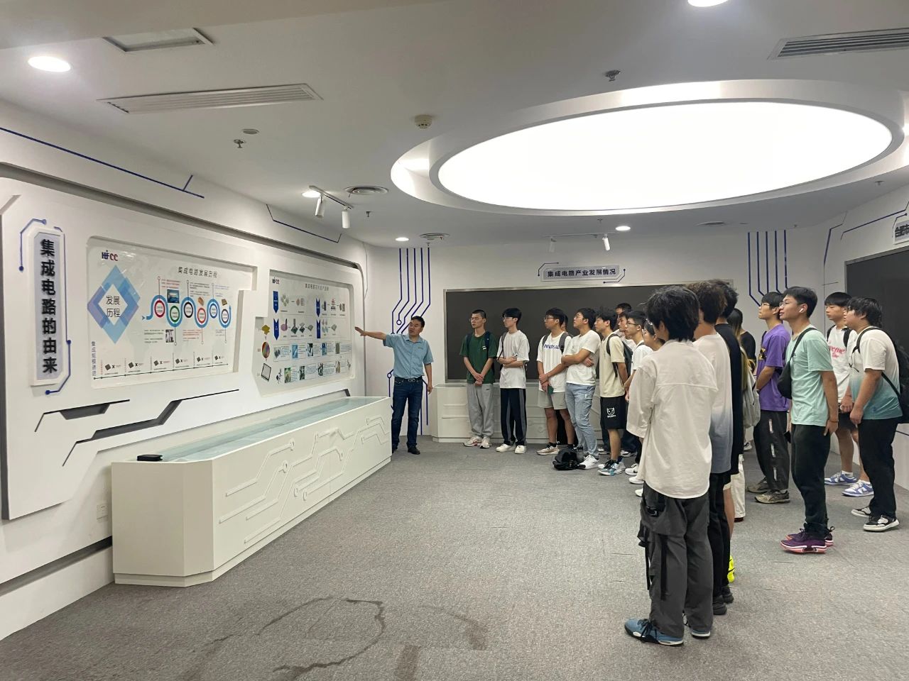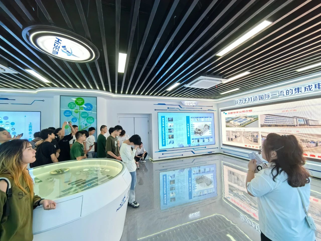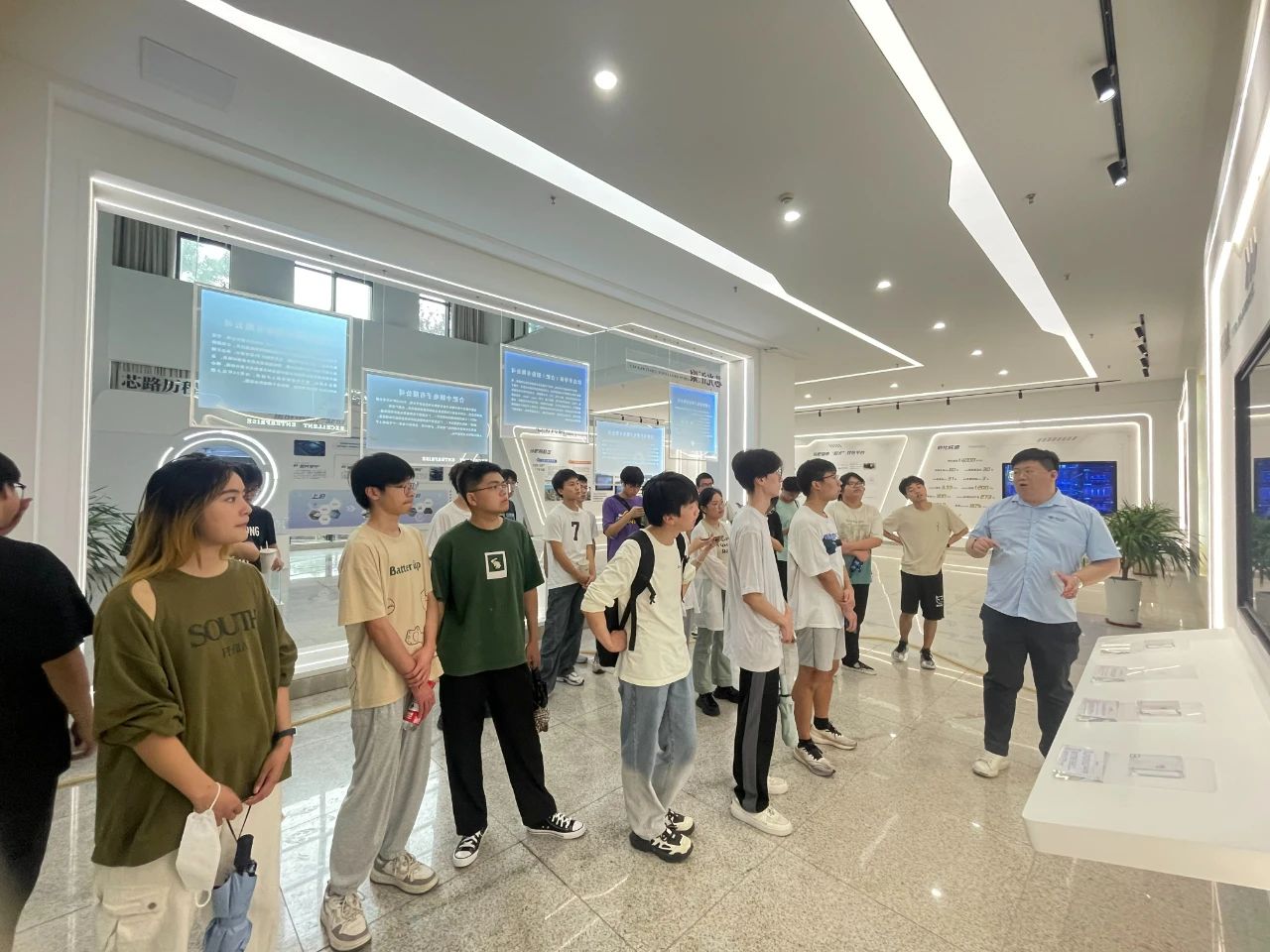 第三站,同學(xué)們來到合肥集成電路設(shè)計大廈,參觀了一樓展廳,一樓的展廳是由合肥高新集成電路孵化器打造,里面介紹了合肥高新區(qū)與高新區(qū)的集成電路產(chǎn)業(yè),以及孵化器提供的各項支持服務(wù),同時還展示了部分優(yōu)秀在孵企業(yè),作為微電子專業(yè)的學(xué)生,讓同學(xué)們充分了解與自己專業(yè)相關(guān)的企業(yè)和行業(yè)的動態(tài),以及集成電路行業(yè)對于國家戰(zhàn)略發(fā)展的重要意義。