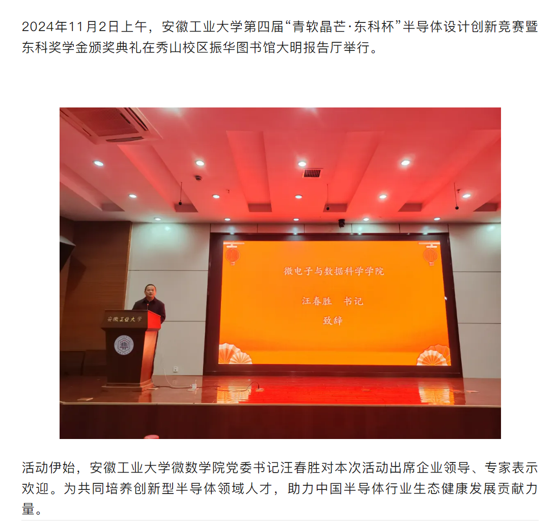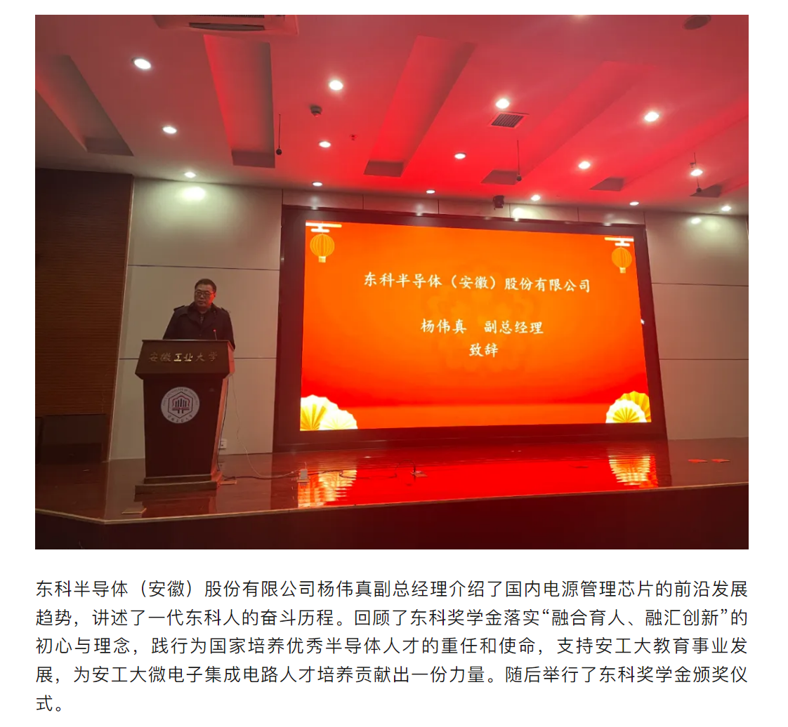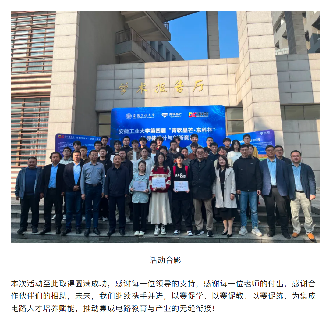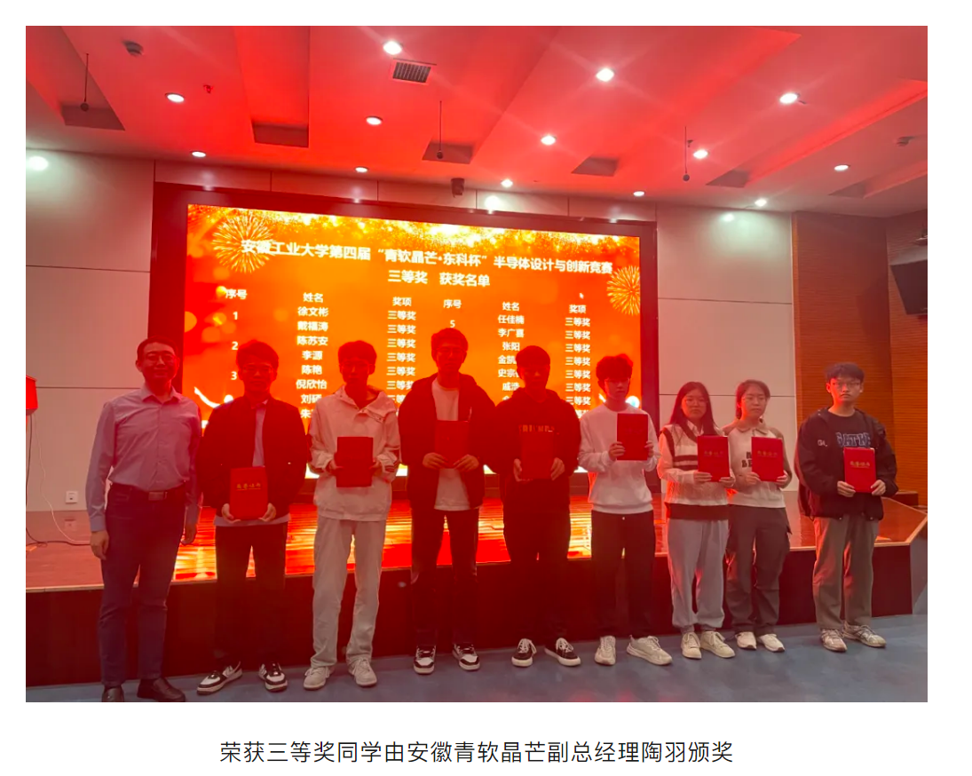 安徽工業(yè)大學(xué)第四屆“青軟晶芒.東科杯”半導(dǎo)體設(shè)計(jì)與創(chuàng)新競(jìng)賽暨東科獎(jiǎng)學(xué)金頒獎(jiǎng)儀式圓滿舉辦